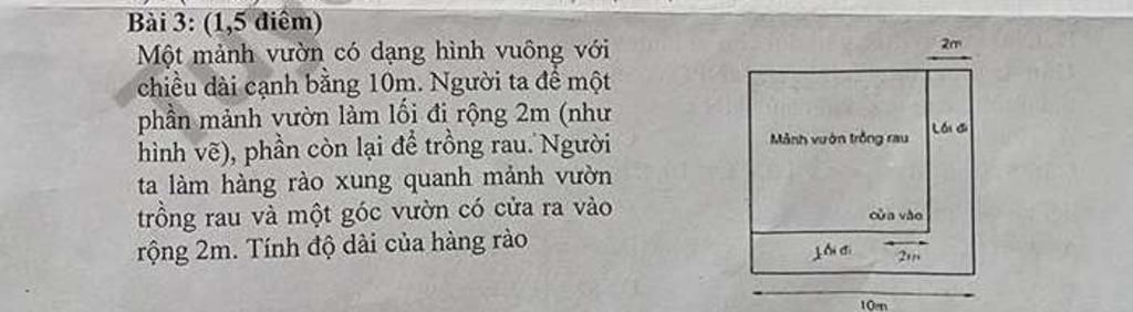 Chiều dài cạnh mảnh vườn trồng rau là: