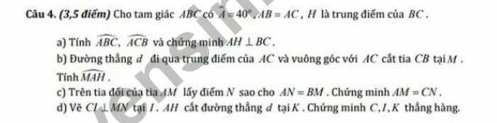 $\Delta ABC $ cân tại $A, AH$ là trung tuyến đồng thời là đường cao