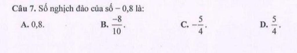 `+)` `C` đúng vì `(-0,8). (-5/4)=1`