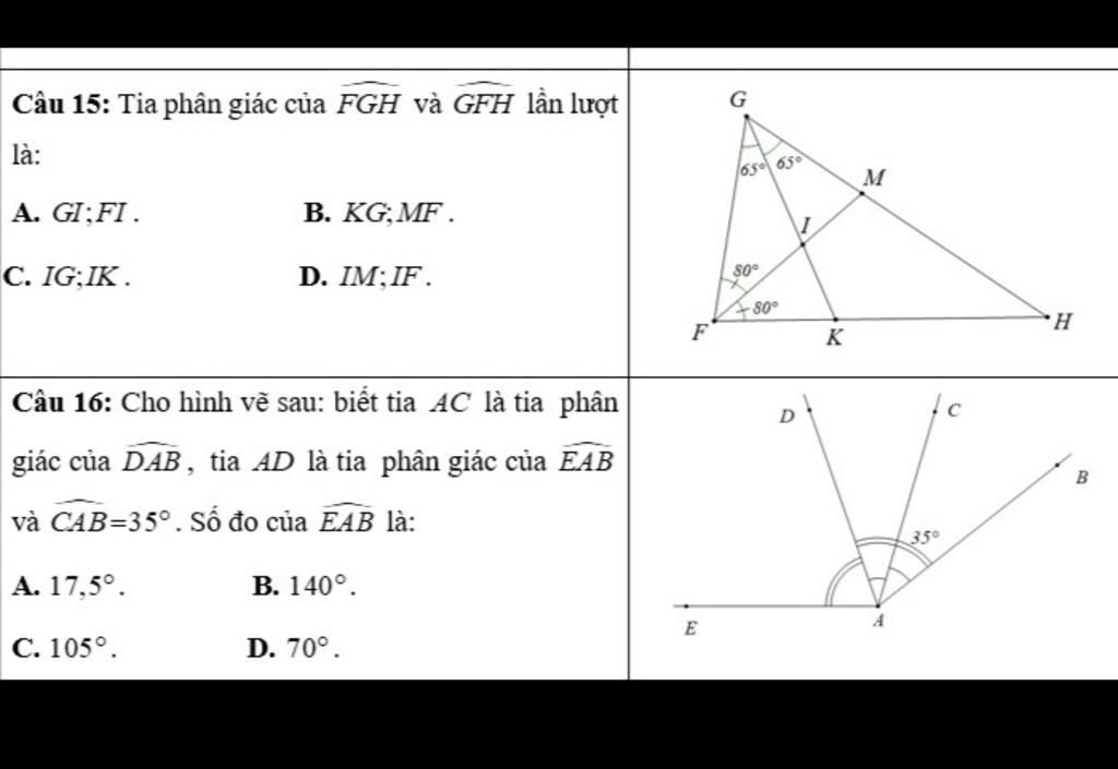 Vì đoạn thẳng chia góc G thành 2 góc bằng nhau là KG