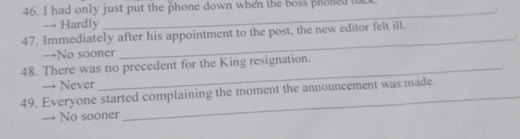 47. No sooner had he been appointed to the post than the new editor fell ill.