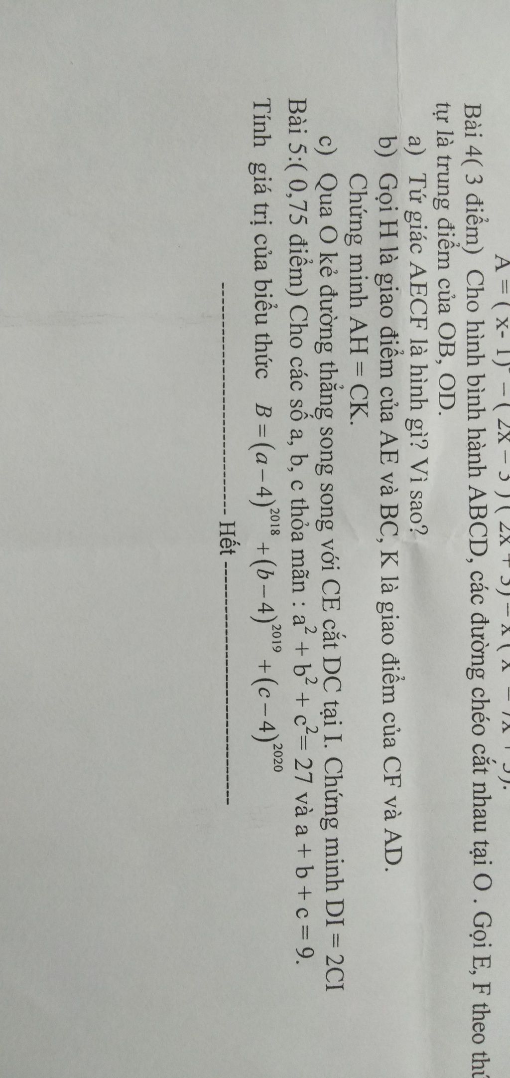 b. AECF là hbh nên AE song song với CF => AH song song với CK