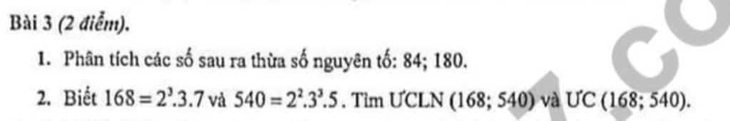 2.Ta có: $UCLN(168;540)=2^2\cdot 3=12$