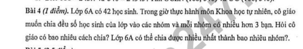 $\to$Số nhóm có thể là: $\{1;2;3;6;7\}$