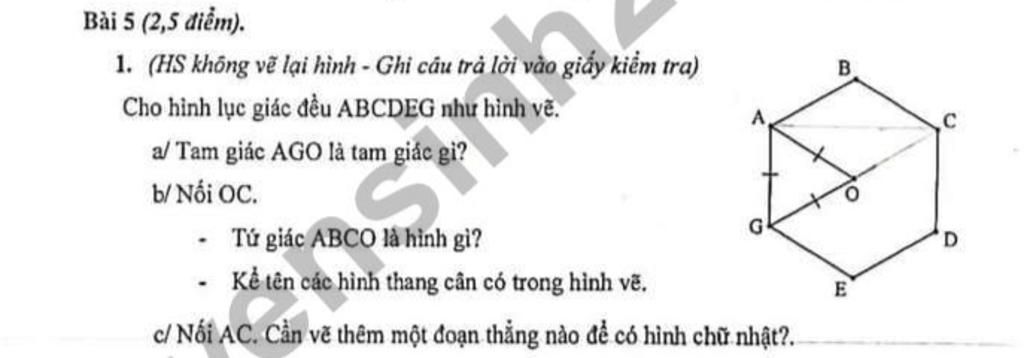 c.Cần vẽ thêm đoạn thẳng $DG$ để có hình chữ nhật