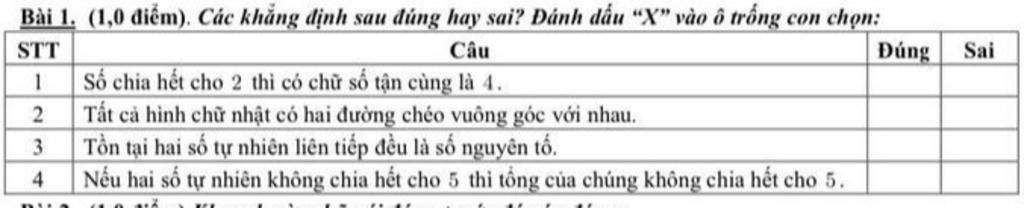 1. Sai. Vì số chia hết cho 2 có tận cùng là 0;2;4;8.