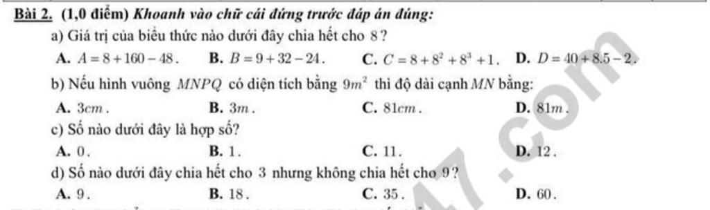 a.A đúng vì $8\quad\vdots\quad 8; 160\quad\vdots\quad 8; 48\quad\vdots\quad 8$