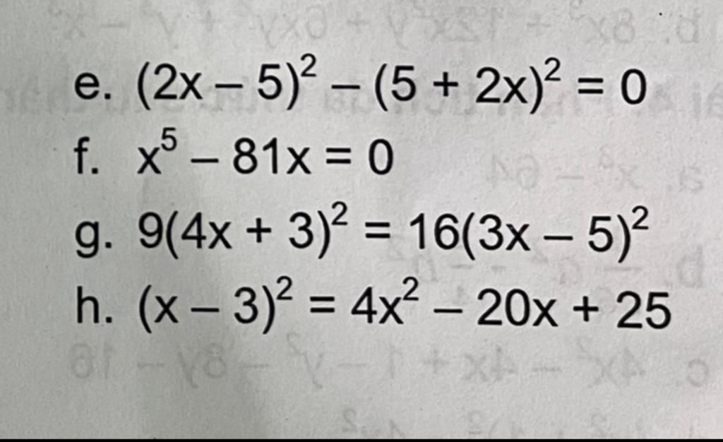 `e)(2x-5)^2-(5+2x)^2=0`