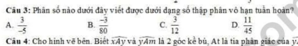 `D. 11/15=0,2(4)->` Là số thập phân vô hạn tuần hoàn `->` Chọn