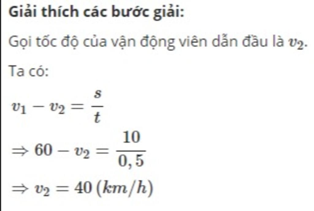 Mô tô bắt kịp vận động viên sau 30 phút, nên quãng đường mô tô đi được bằng khoảng cách ban đầu giữa hai người cộng quãng đường vận động viên đi được, hay: