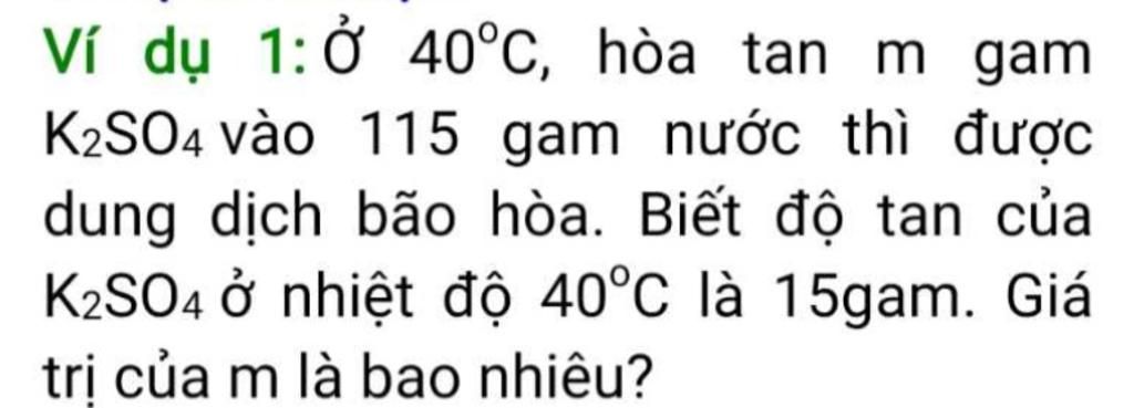 Giải thích các bước giải:độ tan của k2so4 ở nhiệt đổ 40C là 15g nghĩa là cứ 100g H20 sẽ hòa tan được 15g.