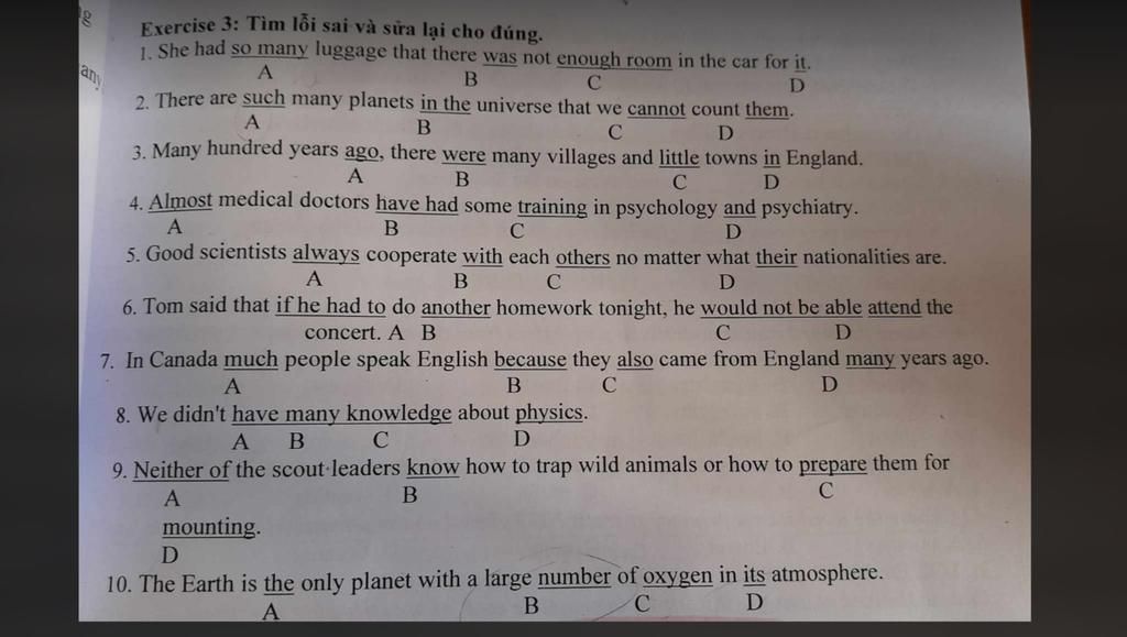 1. A - so much luggage không đếm được