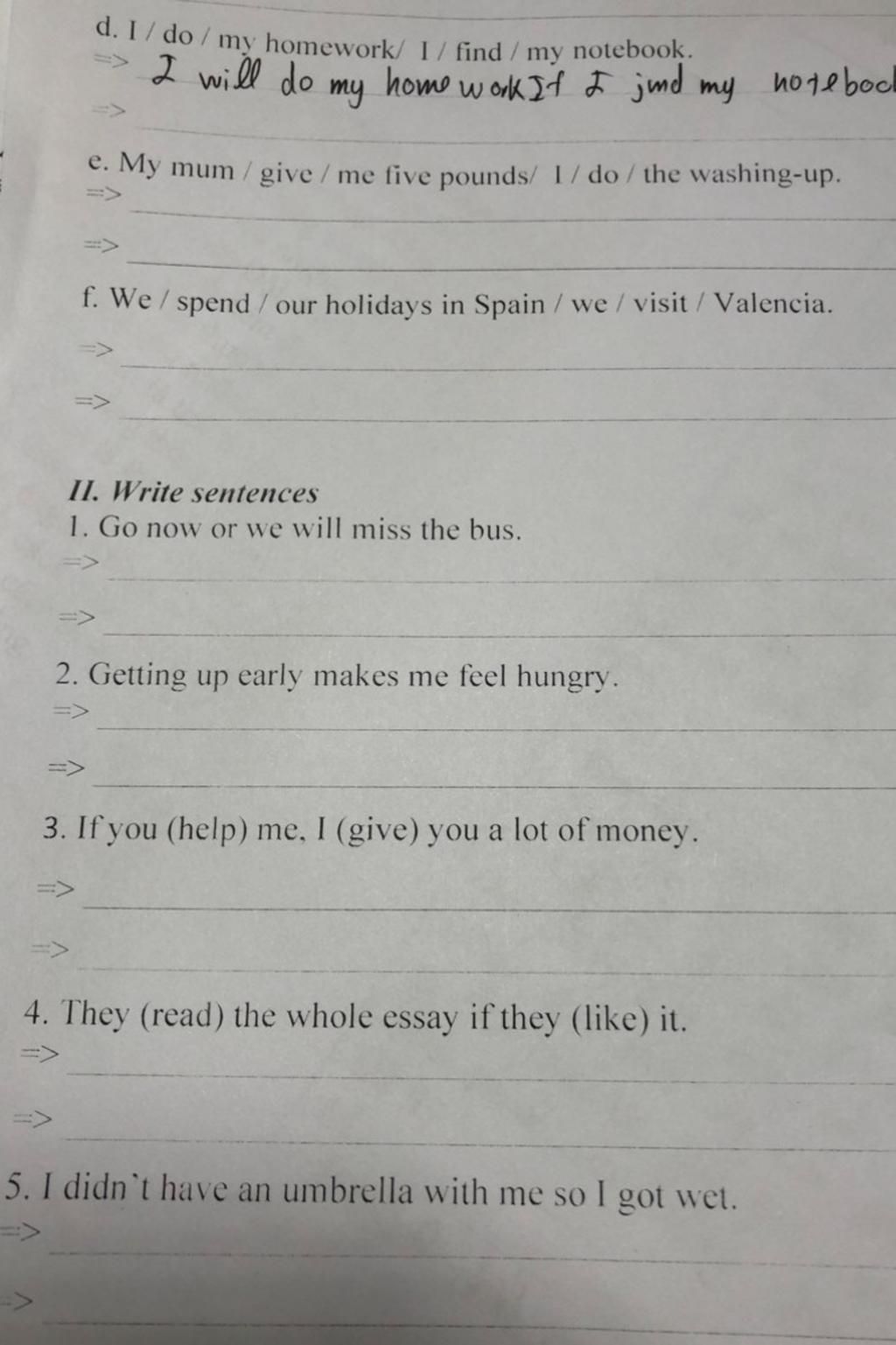 f. We / spend / our holidays in Spain /we/ visit / Valencia.