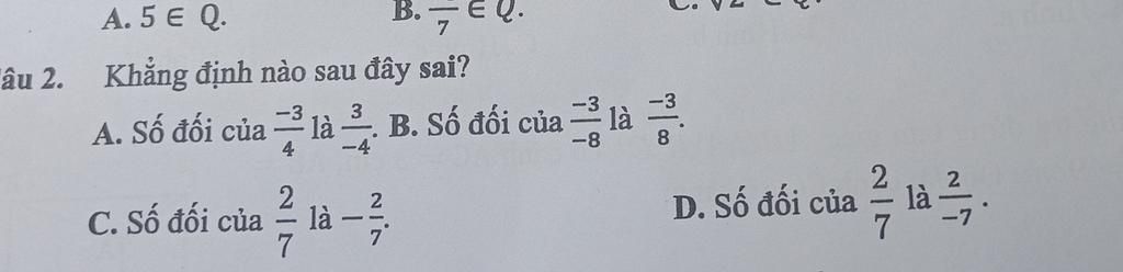 Mà ở câu `A` `-3/4 + 3/-4 = -3/2 \ne0`
