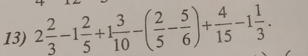 `2 2/3 - 1 2/5 + 1 3/(10) - (2/5 - 5/6) + 4/(15) - 1 1/3`