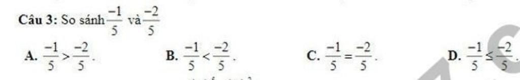 Vì `1/5 < 2/5 => (-1)/5 > (-2)/5`