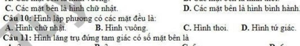 `@` Tính chất của hình lập phương là: