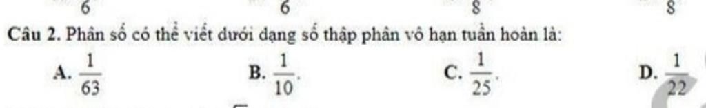 `1/63 = 0,(015873)` `=>` Số thập phân vô hạn tuần hoàn
