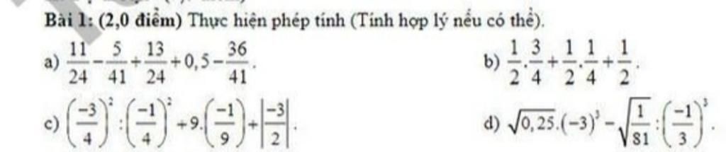 a) `11/24 - 5/41 + 13/24 + 0,5 - 36/41`