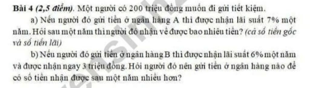 vì 215>214 nên người đó nên gửi tiền ở ngân hàng B để có số tiền nhận được sau 1 năm nhiều hơn