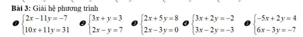 `a){(2x-11y=-7),(10x+11y=31):}`