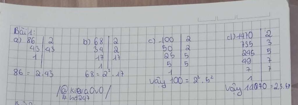 $\text{d) 1470 = 2 × 3 × 5 × 7²}$