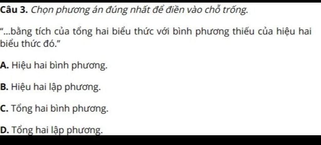 Câu 3. Chọn phương án đúng nhất để điền vào chỗ trống.