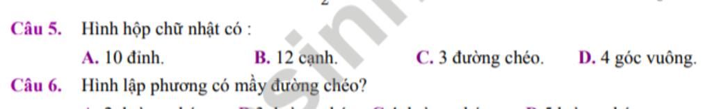 `=>` Đáp án đúng là: Hình hộp chữ nhật có `12` cạnh