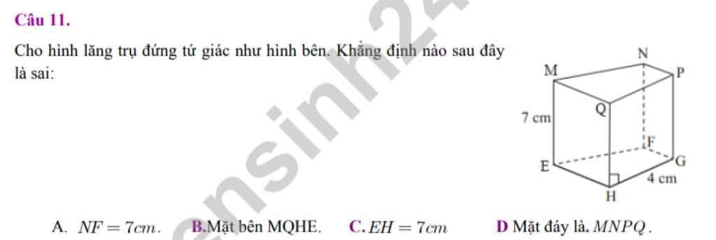 `-` `EH` có thể khác `7cm` ( Đây là cạnh của mặt đáy )
