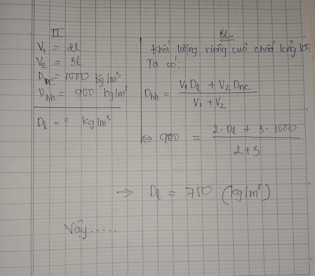 `D_1 = m_1/V_1 = (1,5)/(0,002) = 750 (kg//m^3)`.