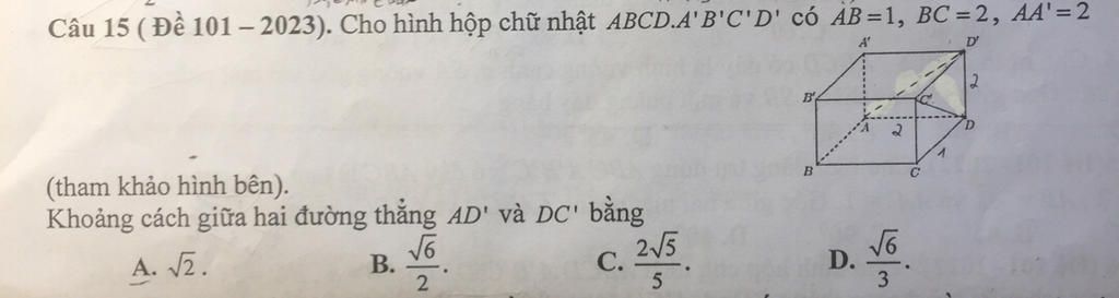 `=> d(AD',C'D) =d(AD',(BC'D)) = d(A,(BC'D)) = d(C,(BC'D)) `