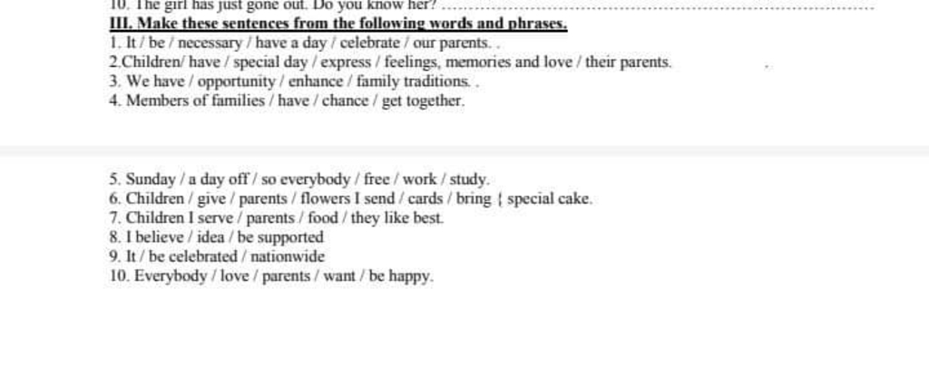 6. Children should give their parents flowers send cards and bring a speacial cake .