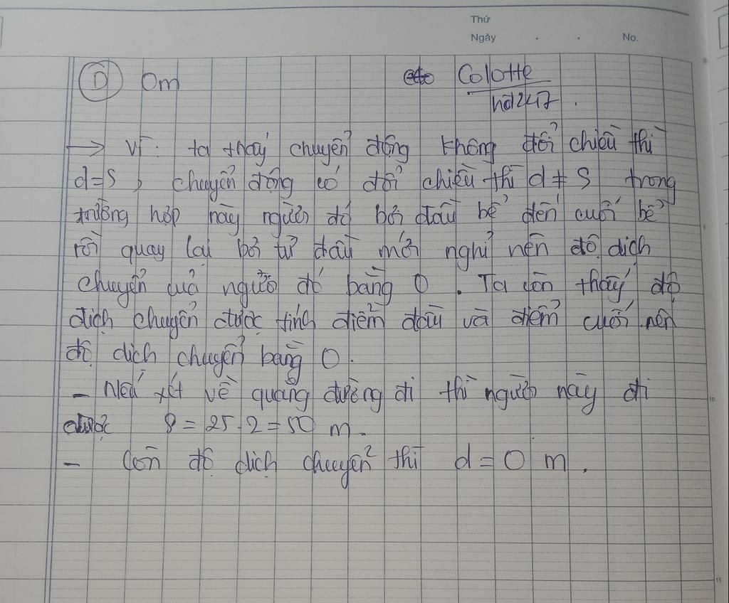 - Mà bạn đó lại bơi từ đầu bể đến cuối bể rồi lại quay về vạch xuất phát ( đầu bể) nên độ dịch chuyển bằng 0.