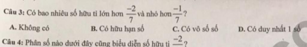 Do : `-2/7 < a < -1/7` ( a ∈ Q ) cũng như `-2 < a < -1` ( a ∈ Z ) nhưng ta sẽ lấy TH cho bạn dễ hiểu .