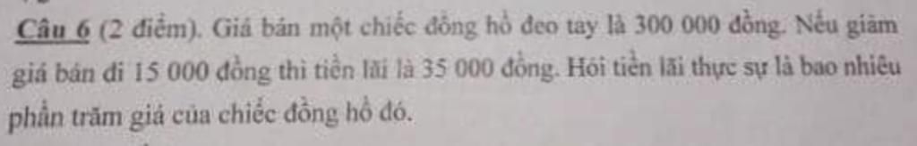 Tiền lãi thực sự là số phần trăm giá của chiếc đồng hồ đó là: