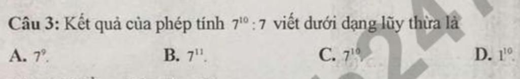 `=>7^10:7=7^10:7^1=7^(10-1)=7^9`