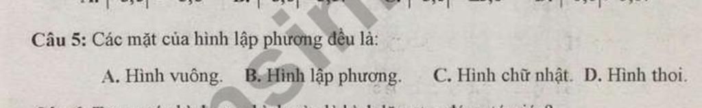 `=>` Các mặt của hình lập phương là hình vuông