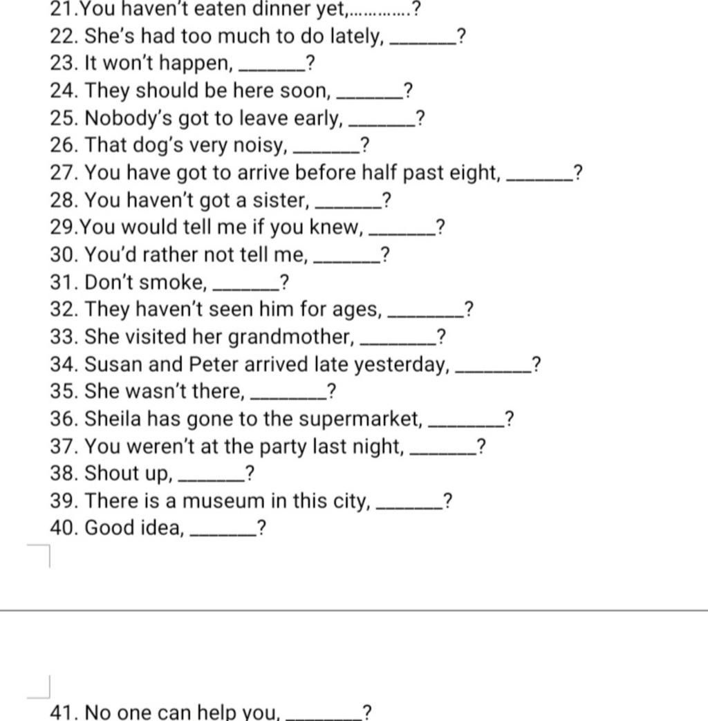⇒TAG QUESTIONS: