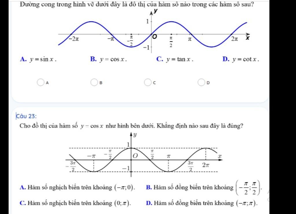Cho đồ thị của hàm số y – cos x như hình bên dưới. K ...