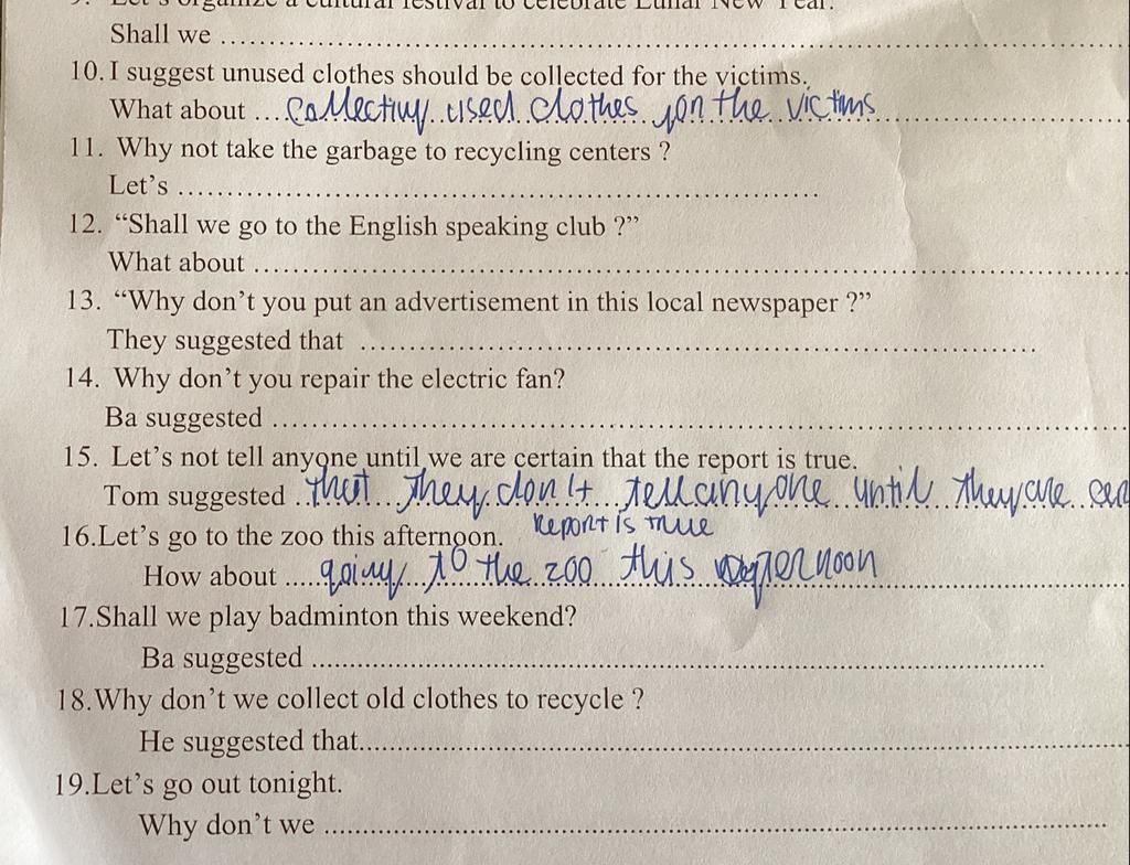 18. He suggested that we collect old clothes to recycle.