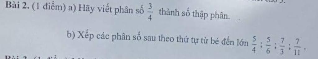 Vậy sắp xếp theo thứ tự từ bé đến lớn là `7/11;5/6;5/4;7/3`.