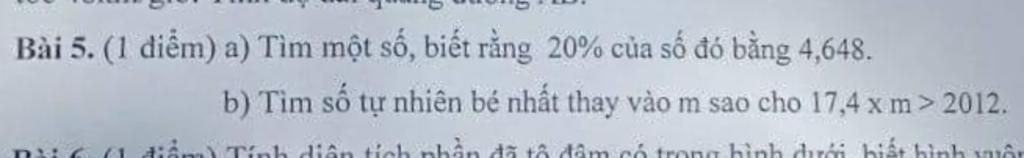 a) Số đó là : 4,648 ÷ 20 % = 23,24