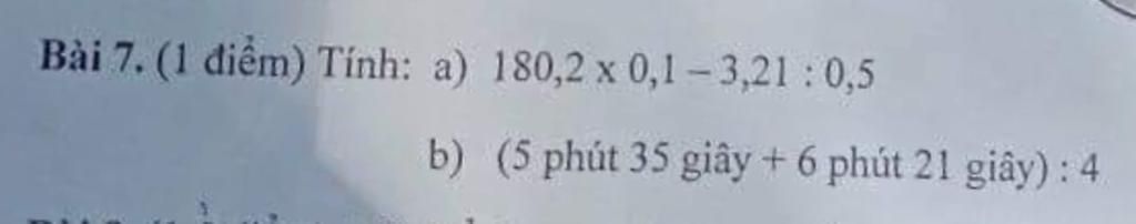 $a) 180,2 \times 0,1 – 3,21: 0,5\\ =18,02 – 3,21 \times 2\\ =18,02 – 6,42\\ =11,6$