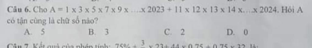 `=>A=1xx3xx5xx7xx9xx...xx2023+11xx12xx13xx14xx...xx2024` có chữ số tận cùng là `5`