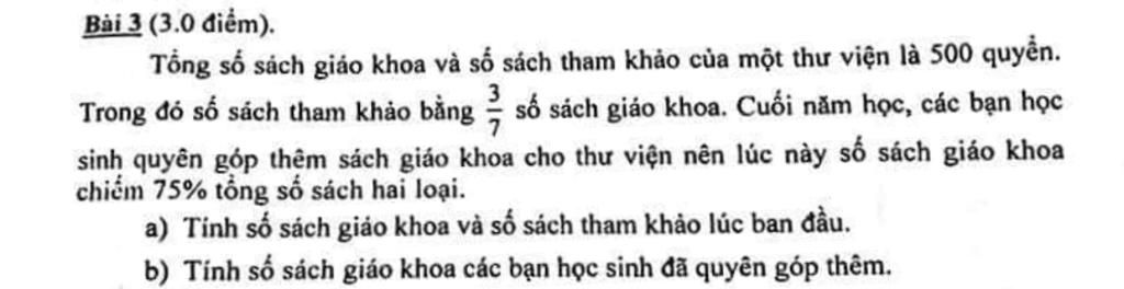 Vậy số sách giáo khoa và số sách tham khảo lần lượt là `350;150` quyển.