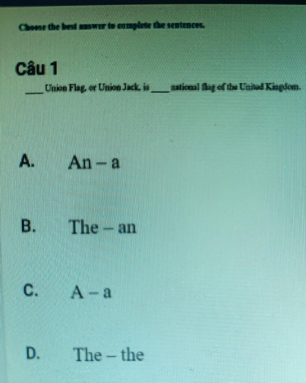 `->` Cờ Liên minh, hay Union Jack, là quốc kỳ của Vương quốc Anh.