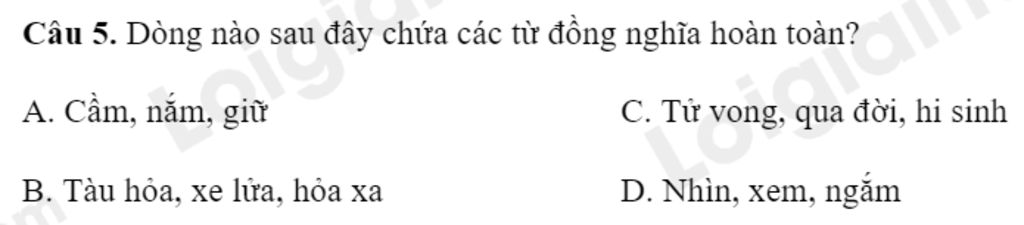 `B` đúng do các từ đều có nghĩa là một phương tiện giao thông, cụ thể là tàu hoả