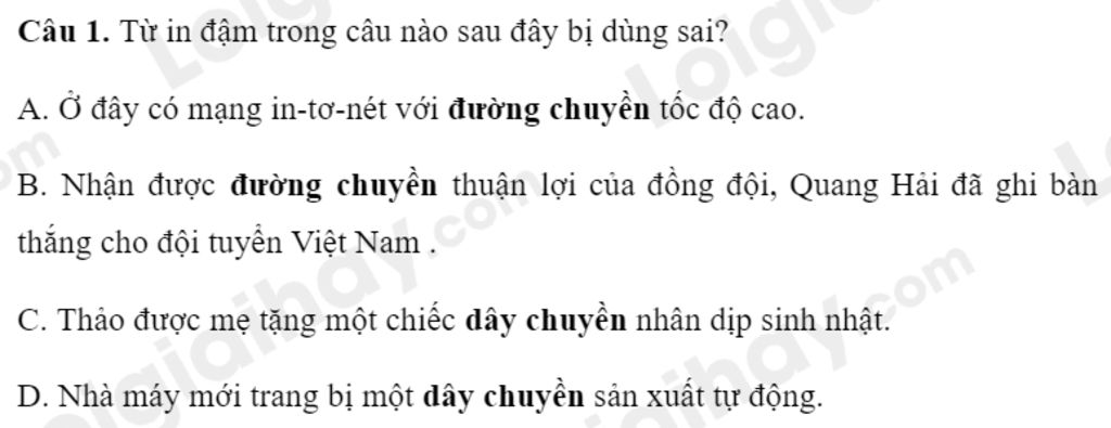 Câu 1. Từ in đậm trong câu nào sau đây bị dùng sai?