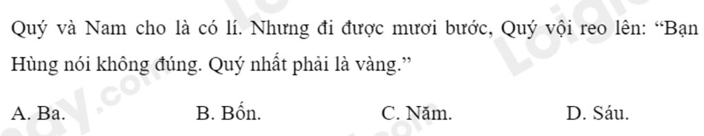 Hùng nói: “Theo tớ, quý nhất là lúa gạo. Các cậu có thấy ai không ăn mà sống được không?”. Quý và Nam cho là có lí. Nhưng đi được mươi bước, Quý vội reo lên: “Bạn Hùng nói không đúng. Quý nhất phải là vàng.”