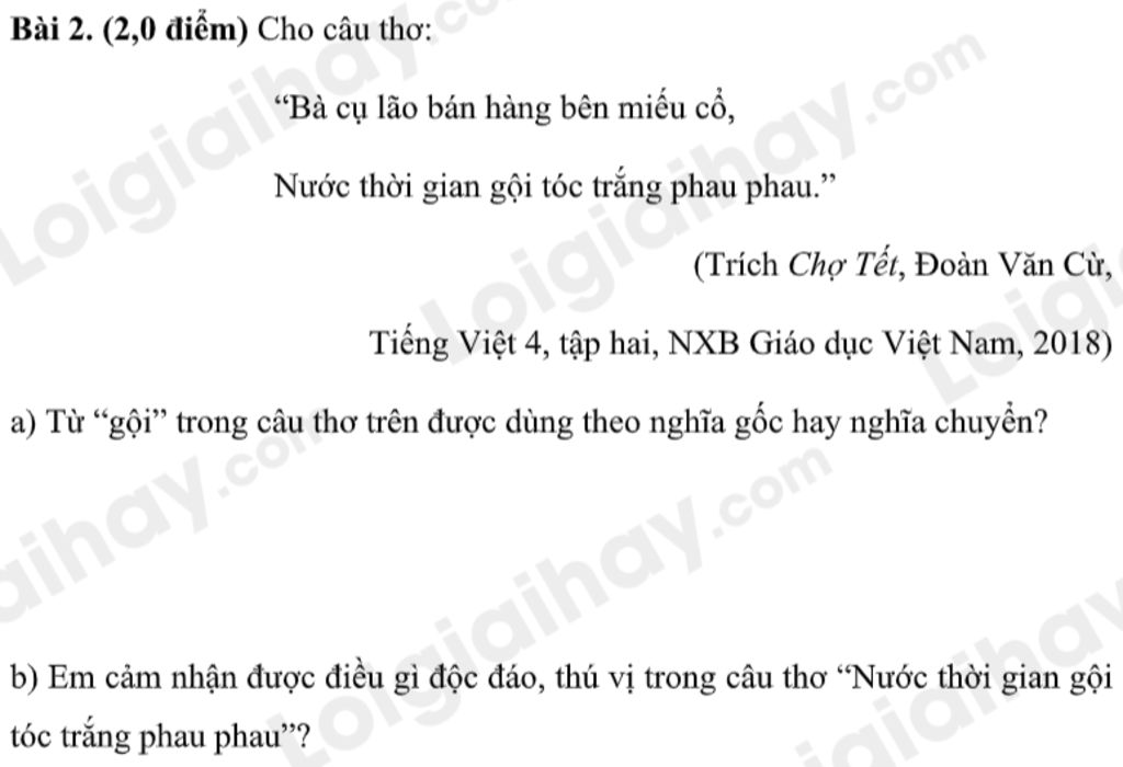 `-` Từ "gội" trong câu thơ "Nước thời gian gội tóc trắng phau phau" được dùng theo nghĩa chuyển.